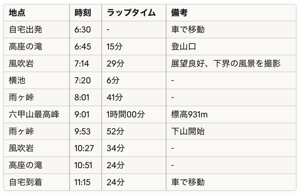 - 総行動時間: 4時間14分(登山のみ)