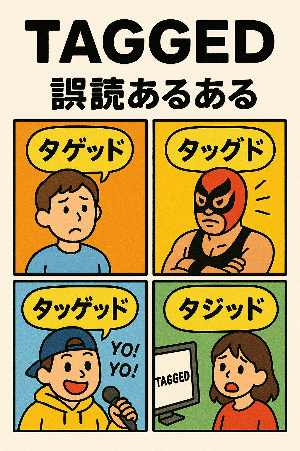 本当の読み方は タグド(tagged = 過去形の“タグを付けた”)。