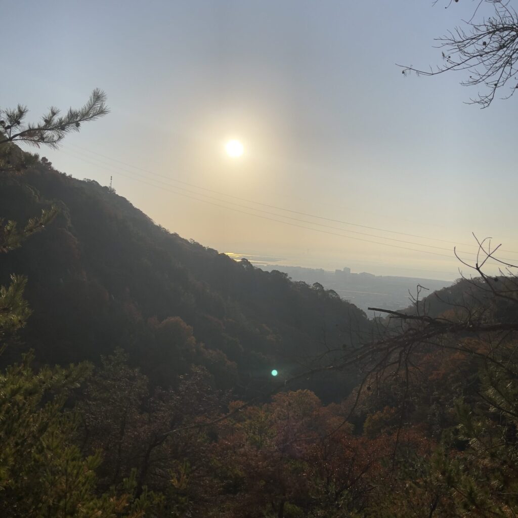 しかし、眼下に広がるはずの絶景は、いささか期待外れであった。冬だというのに気温が高めなせいか、靄がかかったようにすっきりとしない。本来ならば、大阪湾から遠く和泉の方までを望めるはずの眺望も霞んでいた。