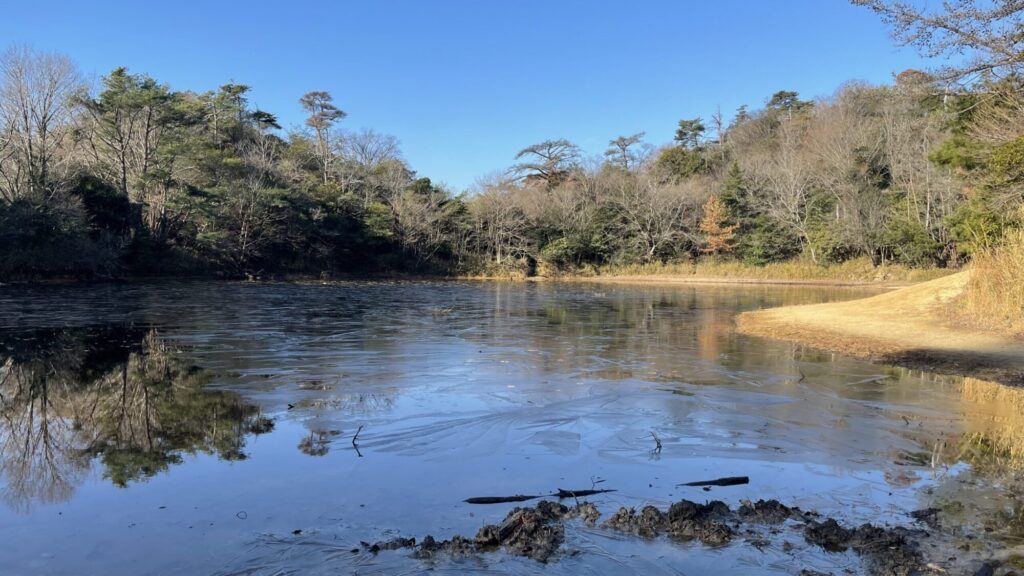 山頂から有馬温泉方面へ下山するルートは日陰が多く、道が凍結していると滑りやすいため簡易アイゼンを準備していましたが、今日は幸いにも不要でした。安全第一で準備していくことの大切さを改めて実感です。