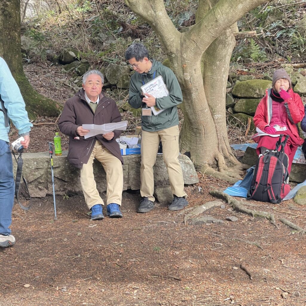 なんと田辺先生は、本庄橋の解説板リニューアルにともなう除幕式のためにいらっしゃっており、その場で先生の講演を拝聴することができました。山の中で、かつての恩師と再会し、歴史的な場に立ち会えるという、まさに山の神様が引き合わせてくれたかのような出来事でした。