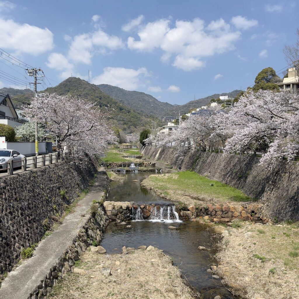 自宅から歩いて高座の滝へ向かう「完全歩きスタート」のフルコース。芦屋川沿いも緑が増してきました。高座の滝までのラップ49分は、徒歩スタートにしてはまずまず。